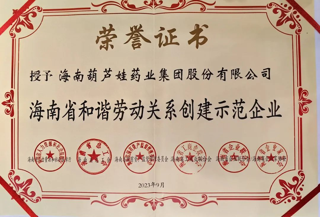 9001cc 以诚为本药业集团获评“海南省和谐劳动关系创建示范企业”